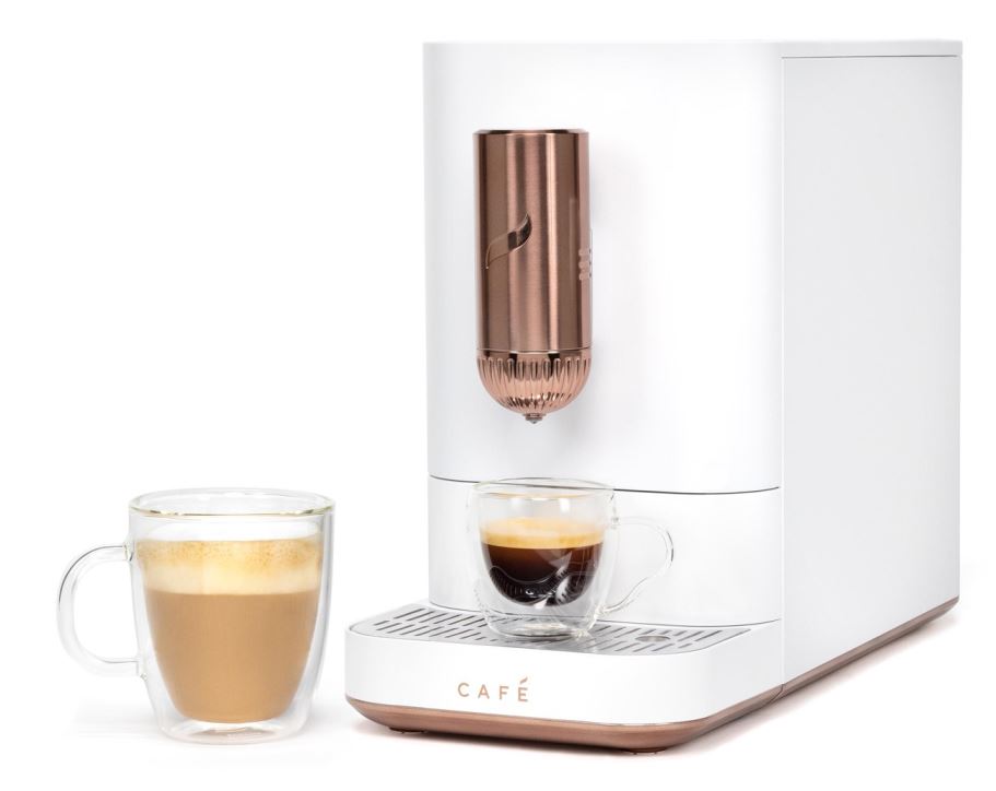 This compact espresso machine has a 7" wide footprint and is adorned with signature copper accents, adding style and sophistication to any countertop.